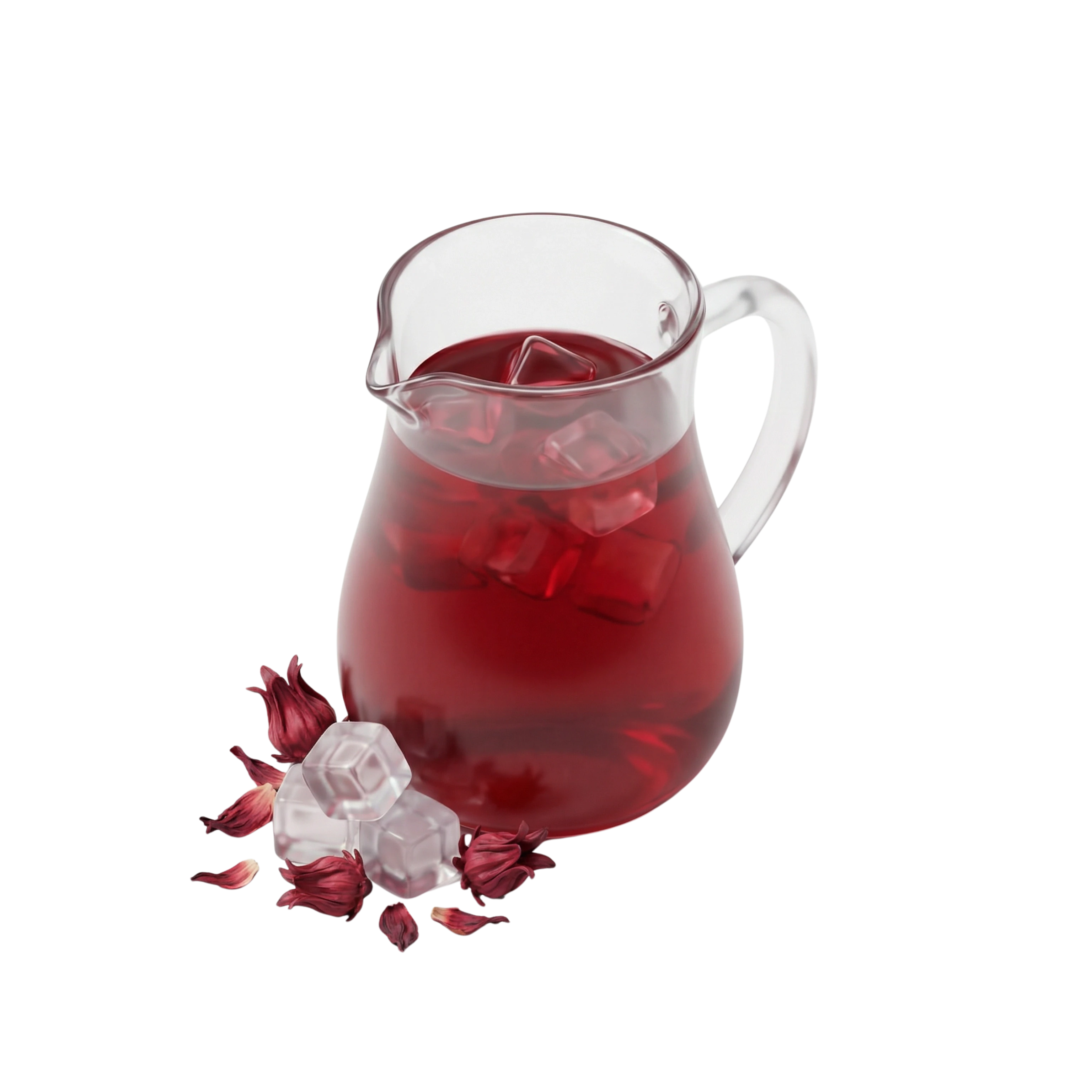 A refreshing, tart herbal drink made by steeping dried hibiscus petals in water, typically served chilled with ice. Its fruity, cranberry-like flavor is both tangy and slightly sweet, making it a popular thirst-quencher, especially in hot climates.