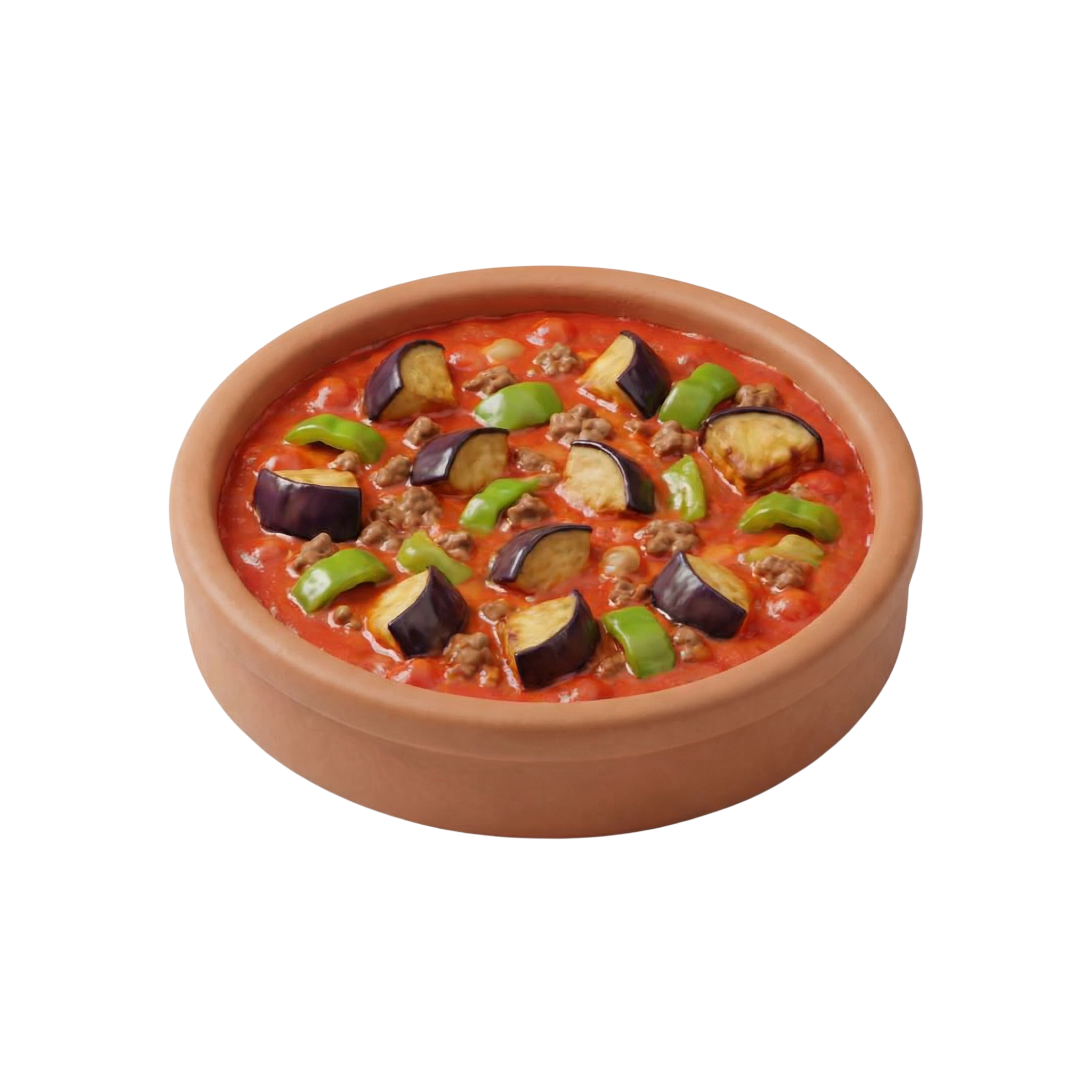 طبق مصري دافئ مكون من طبقات من الباذنجان المقلي، والفلفل الأخضر، واللحم المفروم، مطهو في صلصة طماطم غنية بنكهة الثوم. يتميز الباذنجان بقوامه الكريمي ويمنح الطعم توازناً مثالياً مع حموضة الطماطم.