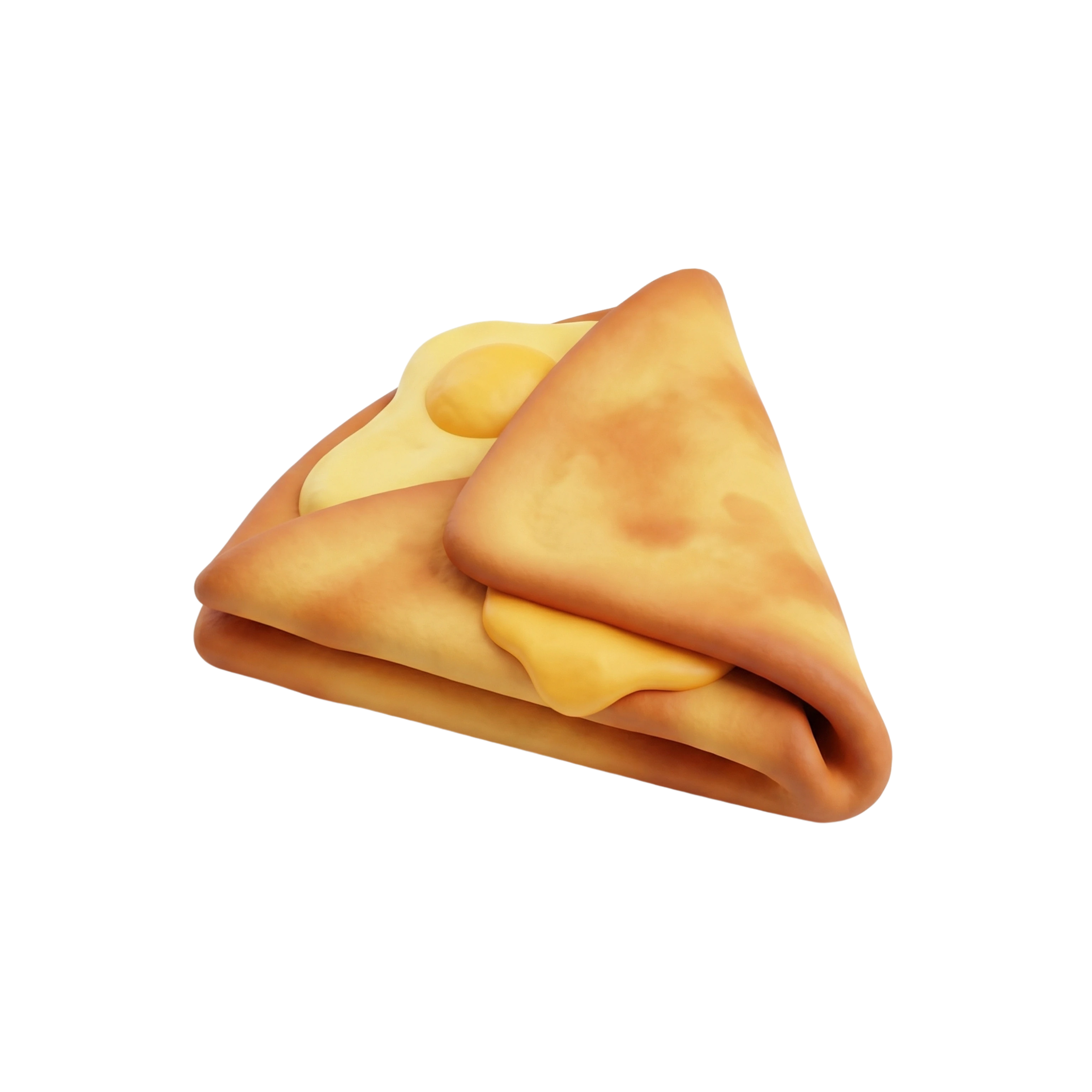 Thin, crispy Regag bread folded around a perfectly cooked egg and melty cheese, offering a delightful contrast between crunch and creamy richness. A beloved Emirati street snack that delivers bold flavor in every bite.