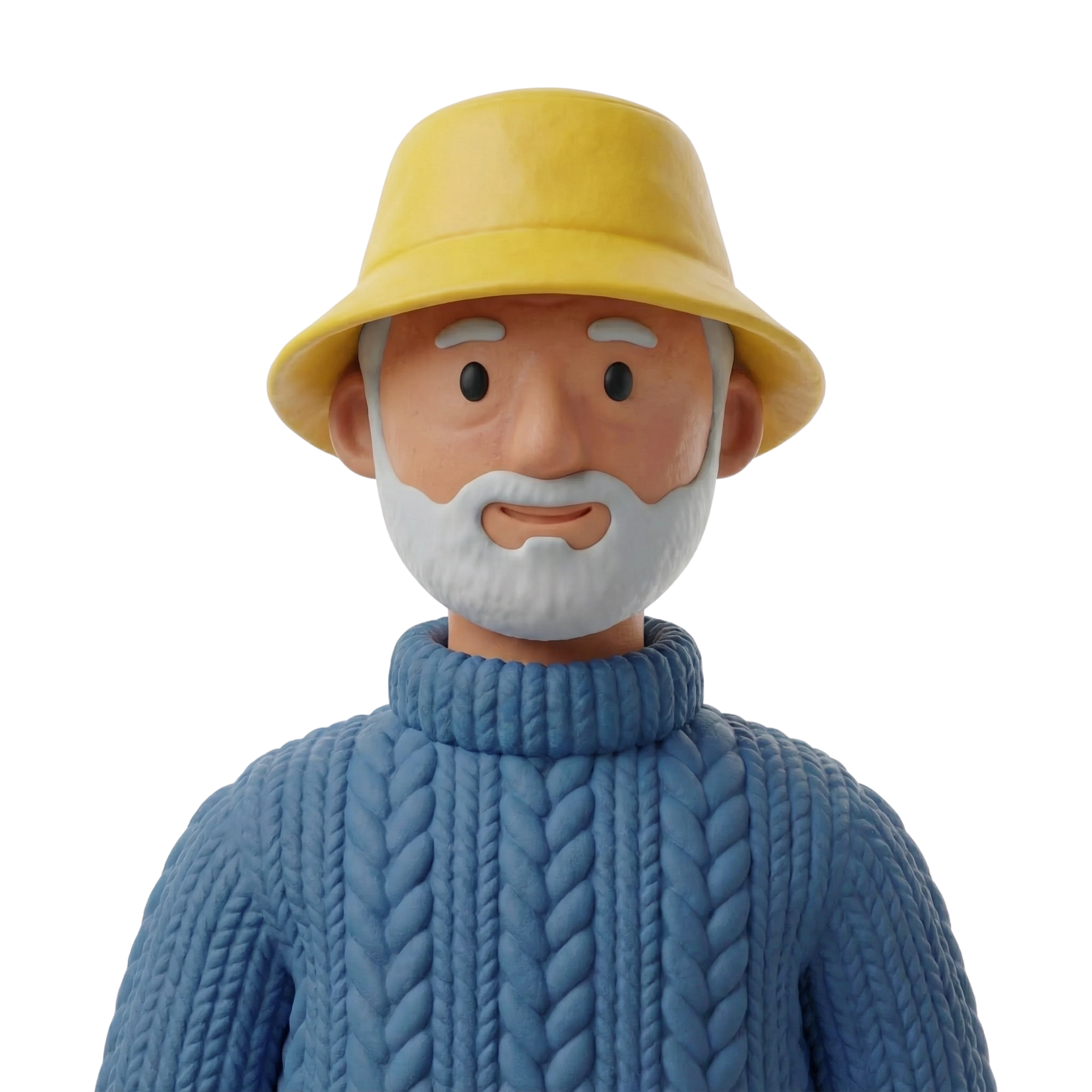 An experienced fisherman clad in traditional coastal gear, ready to brave the sea with his trusted equipment and timeless maritime wisdom.