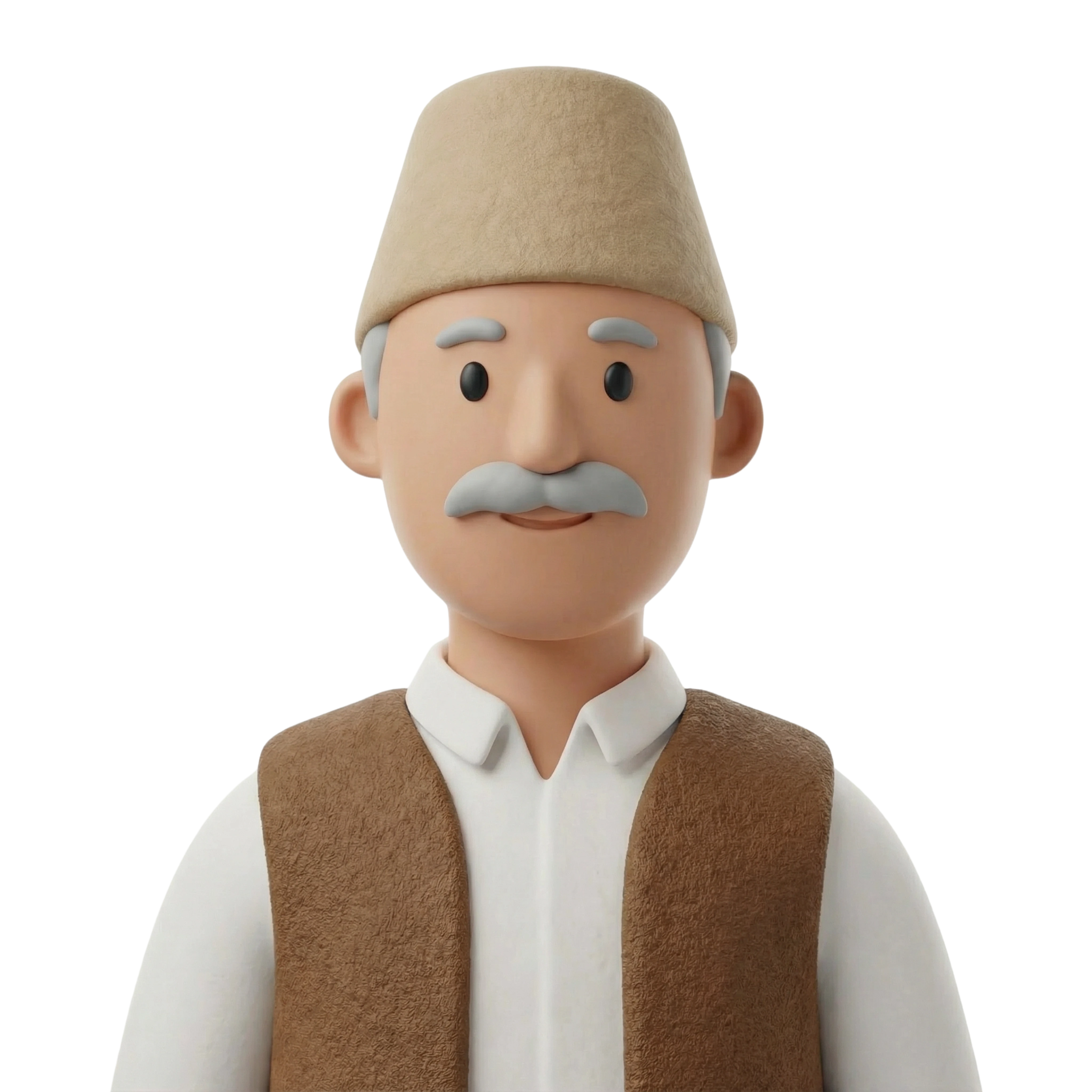 An elderly Lebanese man dressed in traditional attire, reflecting cultural pride through his beige tarboosh and rustic vest, embodying the spirit of rural Lebanese heritage.