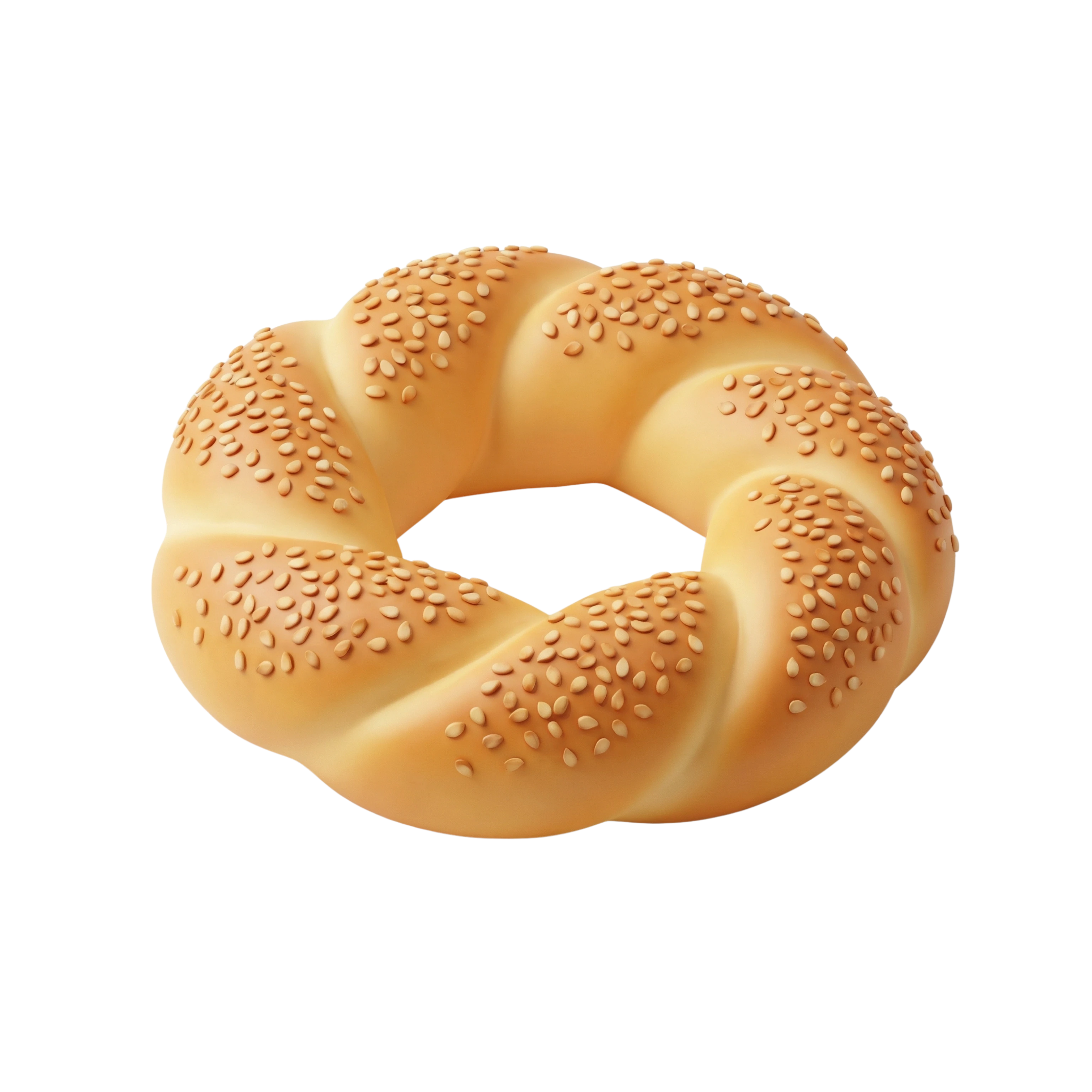 خبز كعك دائري طري من الداخل ومقرمش من الخارج، مغطى بسخاء ببذور السمسم المحمصة. يتميز بنكهته الخفيفة والمائلة للحلاوة وقوامه الهش، ويُقدم عادةً مع الجبن أو المربى أو كأس من الشاي.