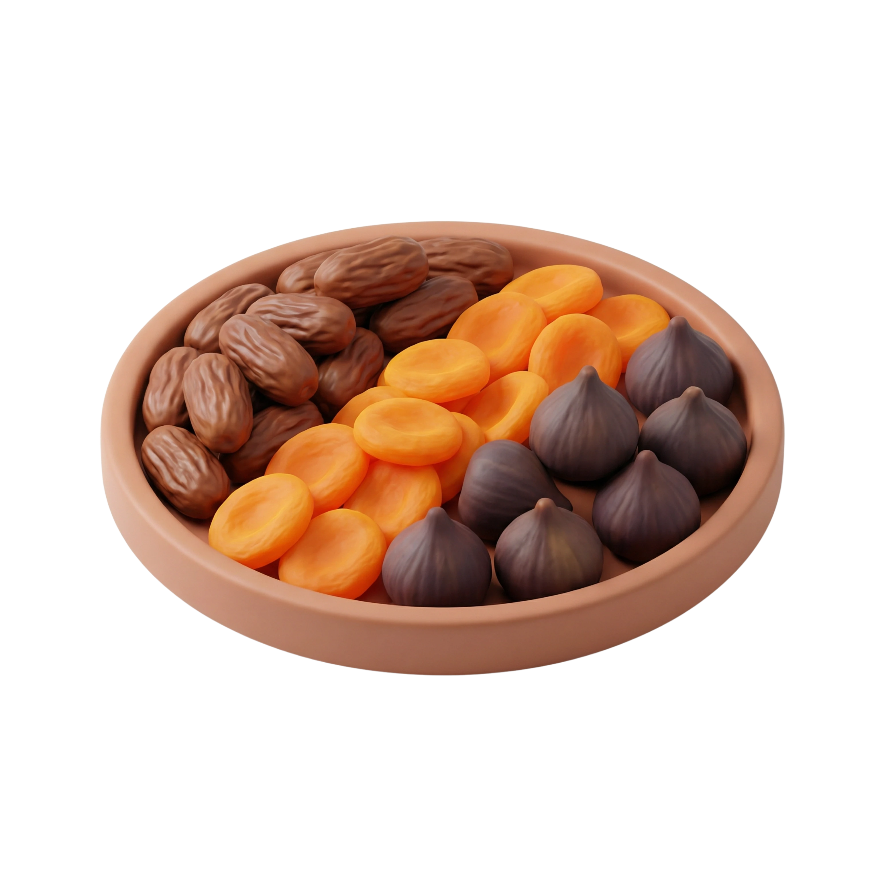 A delightful assortment of sun-dried fruits including chewy medjool dates, tangy apricot slices, and sweet black figs. The combination offers a rich, naturally sweet flavor profile with a variety of textures—from soft and sticky to firm and tender—making it a wholesome snack or a traditional accompaniment during festive occasions.