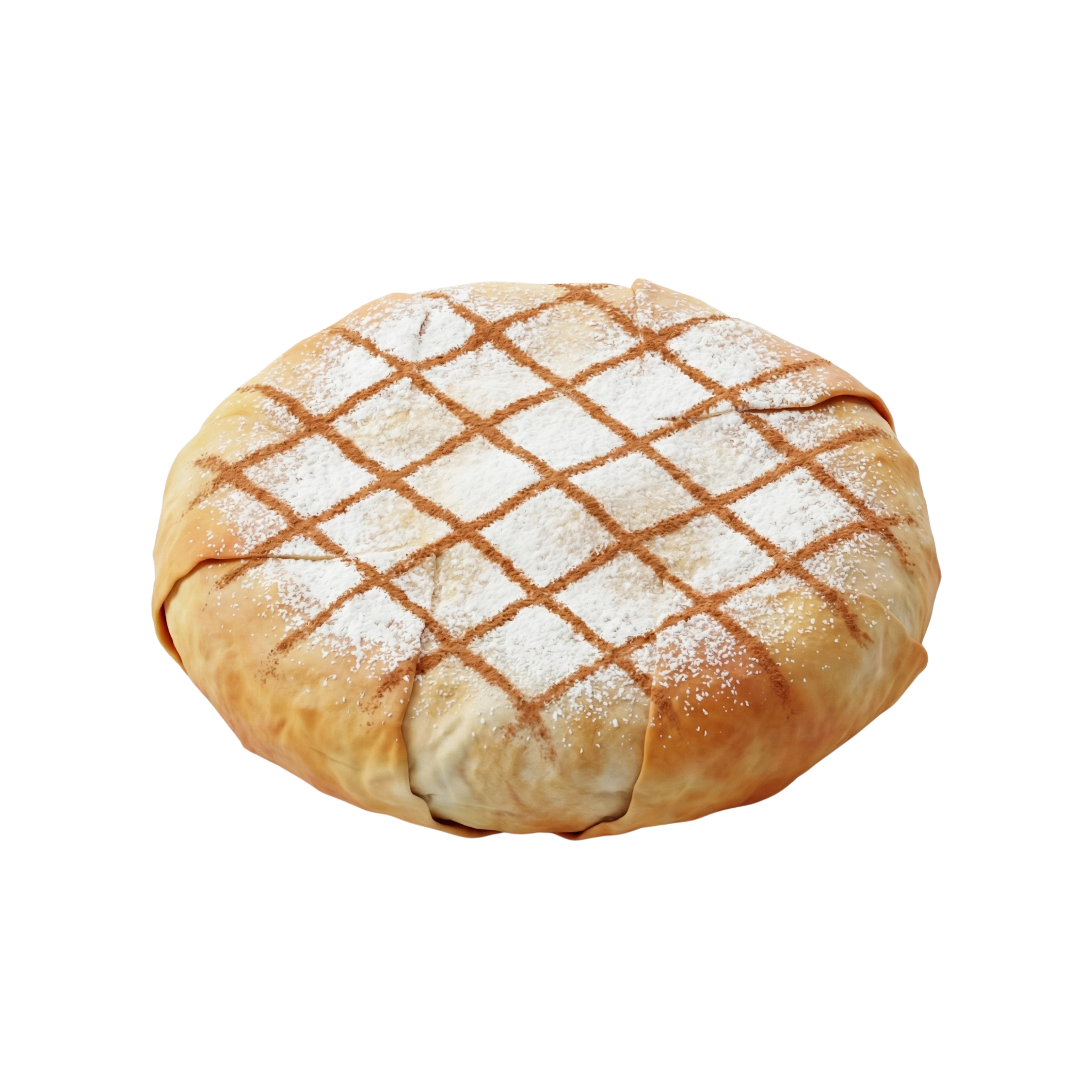 فطيرة مغربية مقرمشة محشوة بقطع دجاج طرية ولوز محمص ومزيج من التوابل العطرية، ملفوفة بعجينة الورقة الذهبية ومغطاة بالسكر البودرة والقرفة لمذاق يجمع بين الحلاوة والملوحة في توازن رائع.