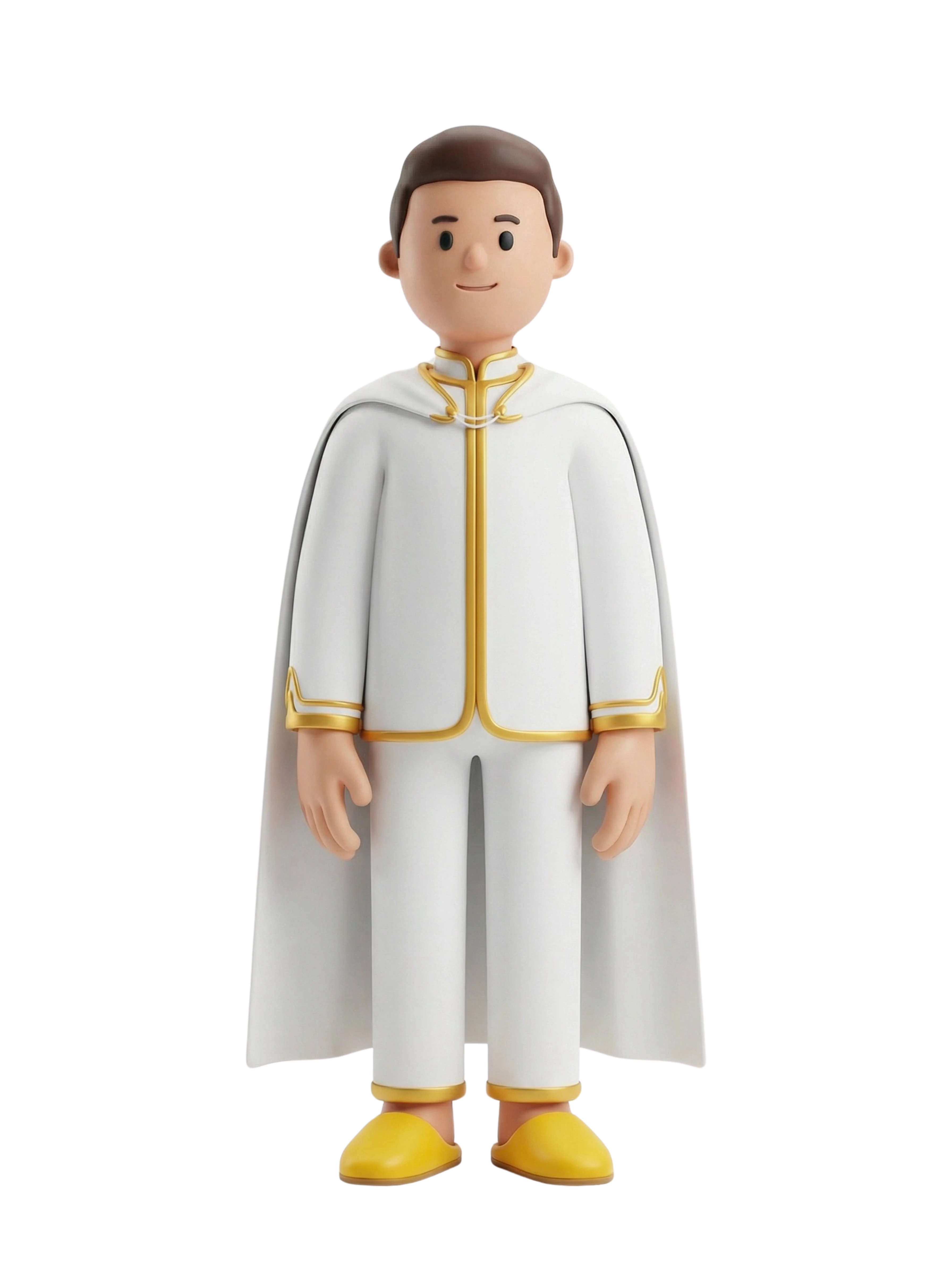 A traditional groom dressed in an elegant Moroccan jabador, accented with gold embroidery and a ceremonial cape, symbolizing celebration and heritage in Moroccan weddings.