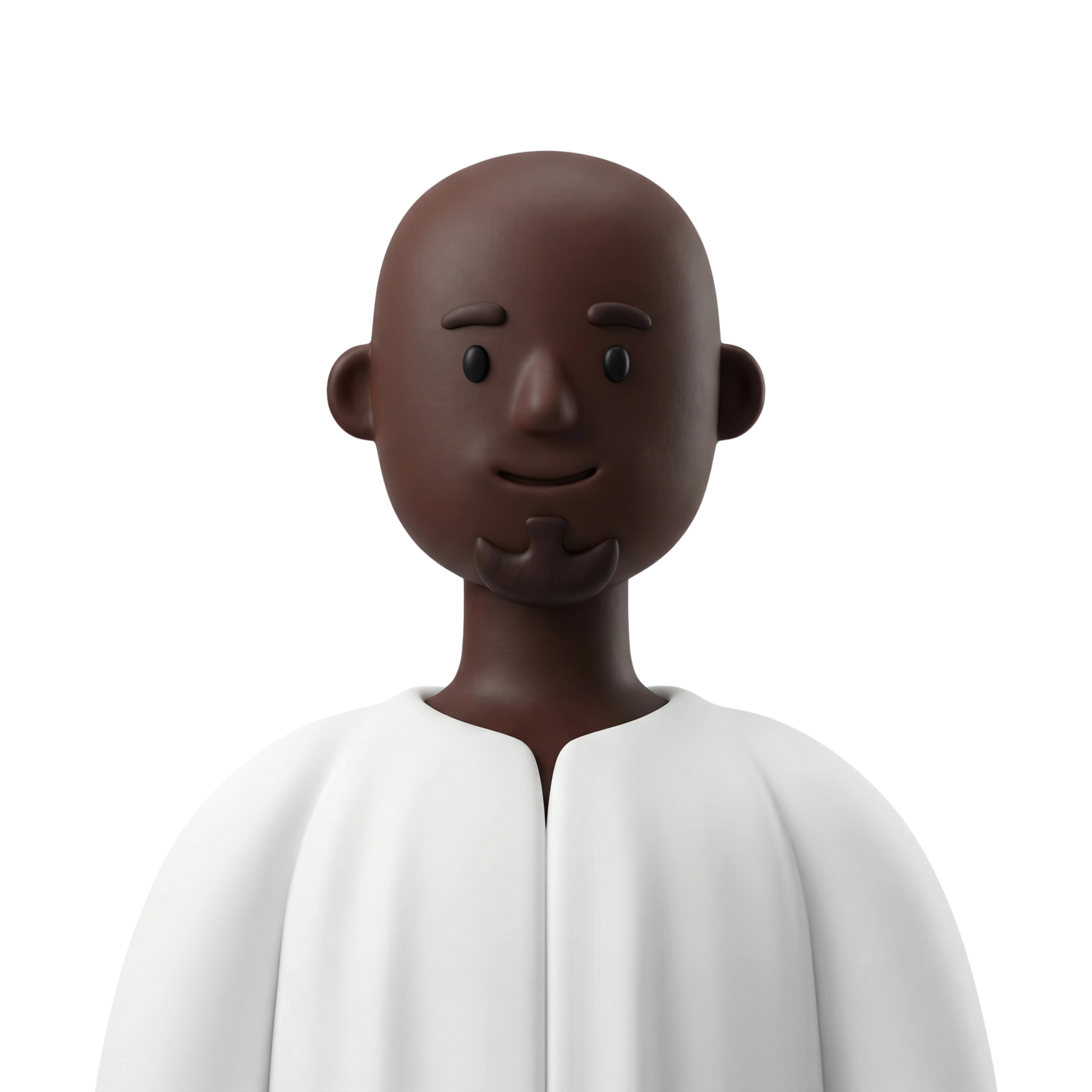 A proud Nubian man wears a traditional white jalabiya, reflecting Sudanese heritage and cultural identity through minimalist elegance.