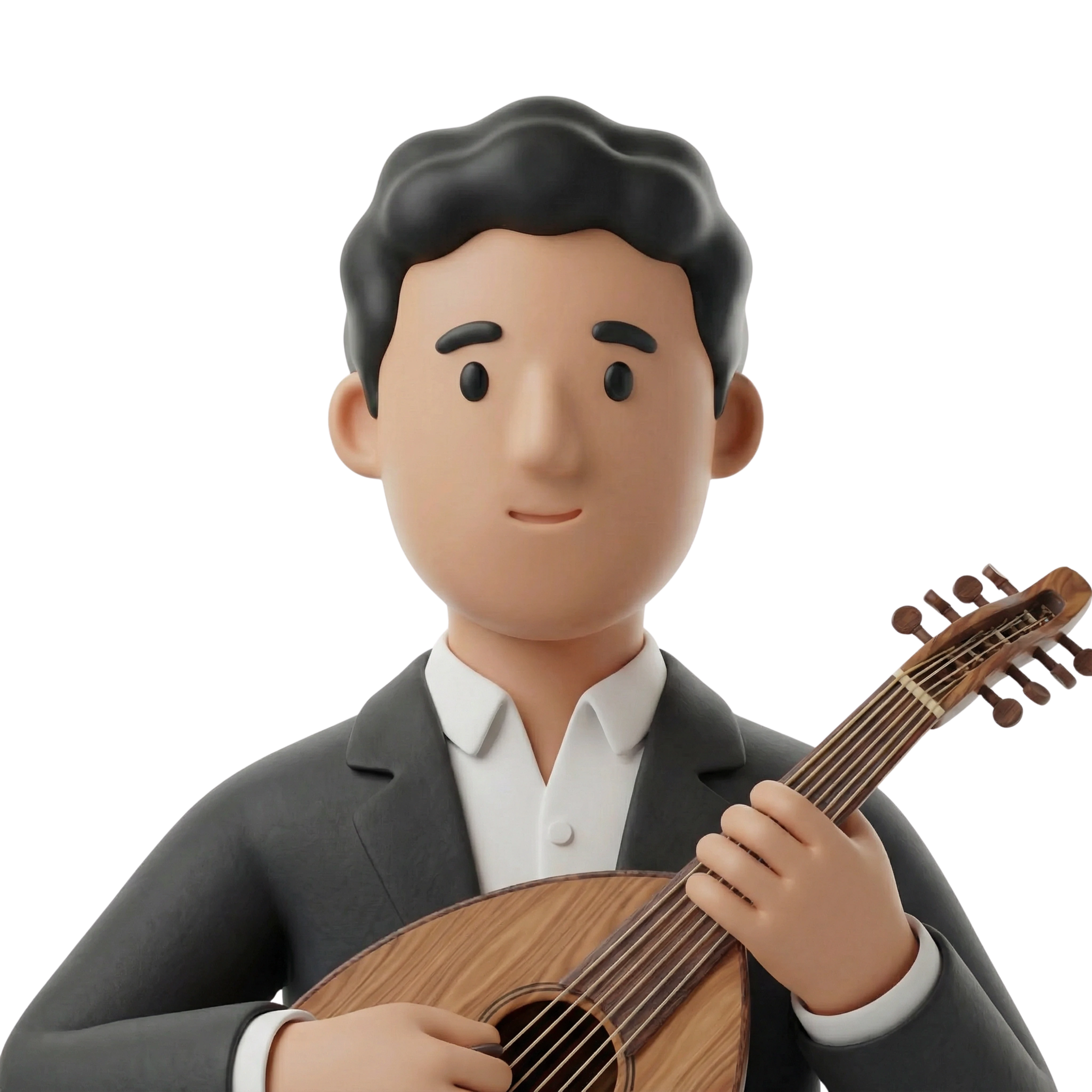 A dedicated musician skillfully holding an oud, blending traditional Levantine musical heritage with a modern, professional appearance.