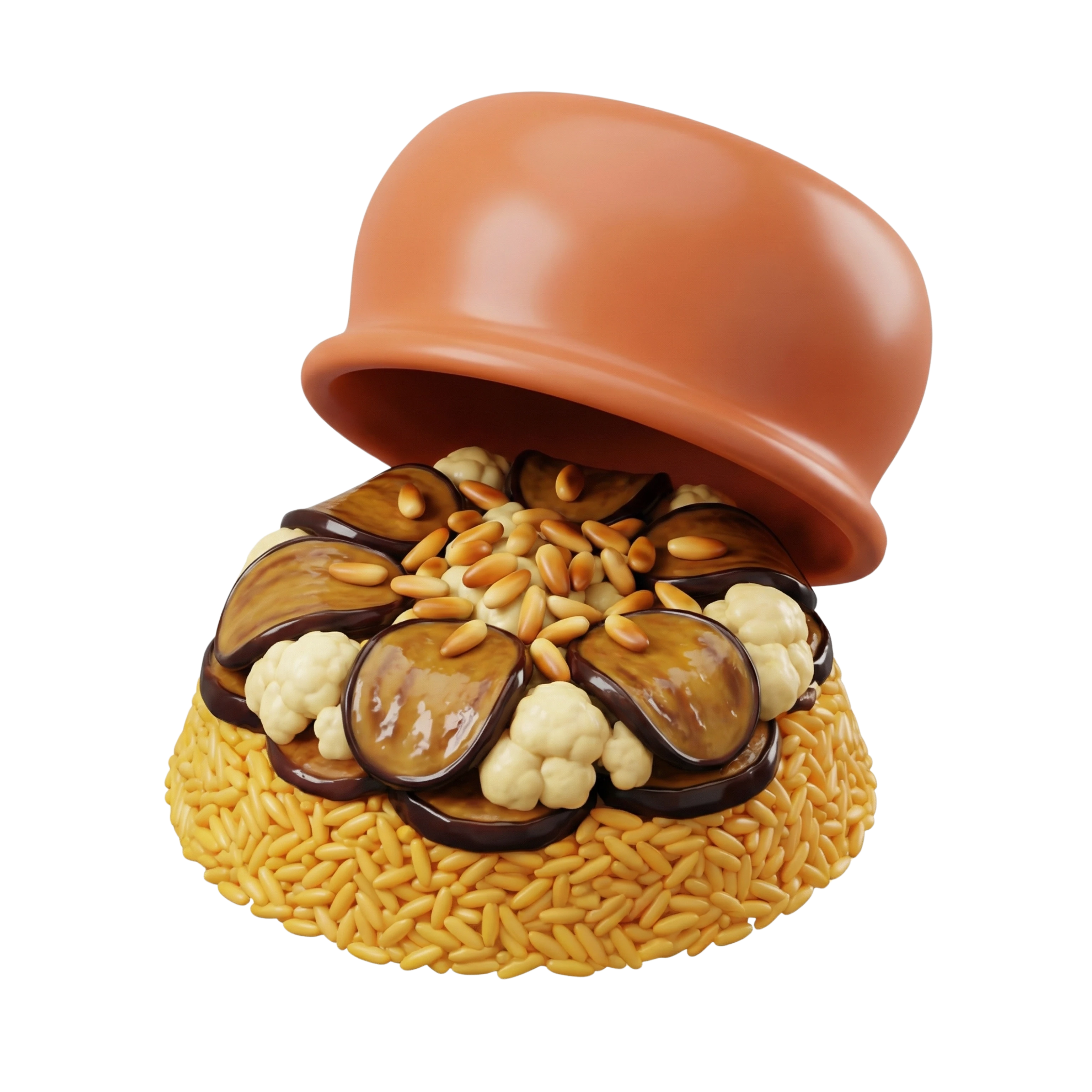 المقلوبة هي طبق أرز فلسطيني شهي يتكون من طبقات من الباذنجان المقلي، القرنبيط المشوي، اللحم أو الدجاج الطري، والتوابل العطرية. تُقلب قبل التقديم لتكشف عن شكل جميل ومذاق يجمع بين الخضار المقرمشة والأرز المنقوع بالمرق المتبل.