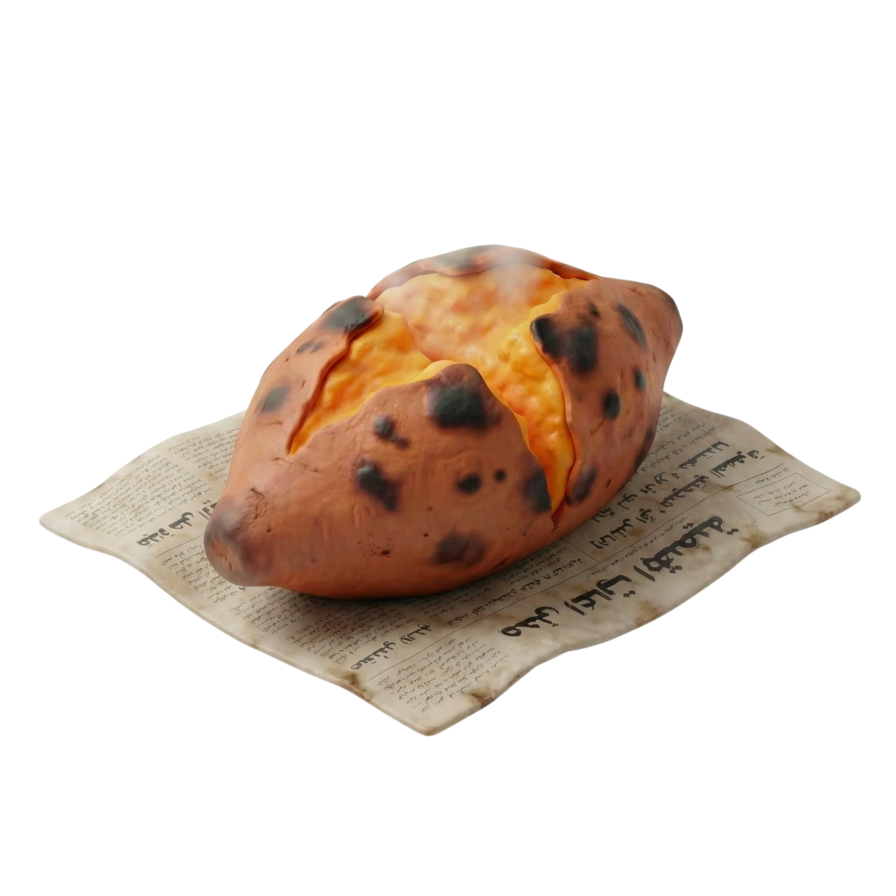 Smoky on the outside and tender on the inside, this roasted sweet potato (batata) is a nostalgic Egyptian street food favorite. Naturally sweet and creamy, its soft flesh contrasts deliciously with its crisp, caramelized skin.