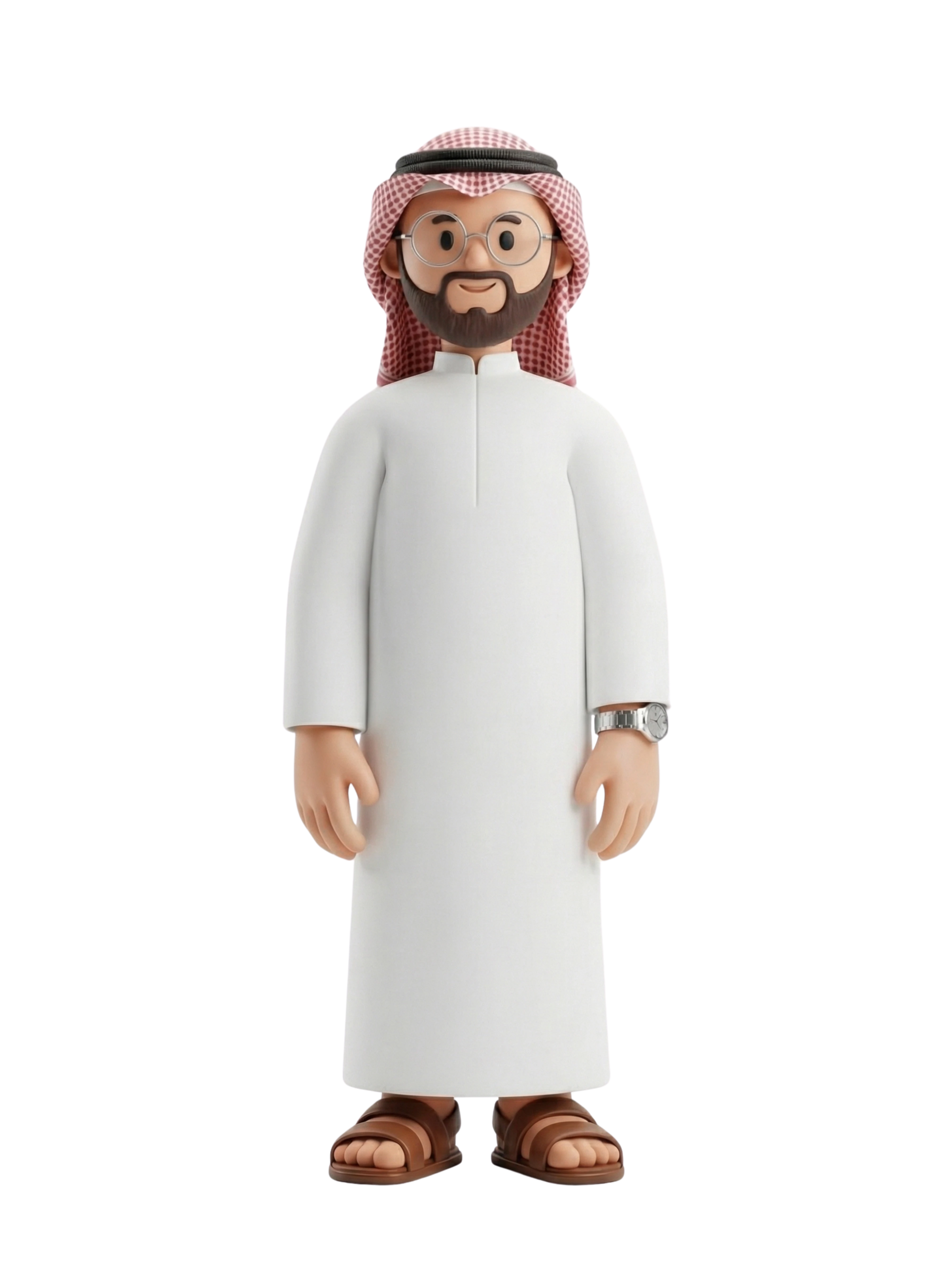 رجل سعودي يرتدي زياً تقليدياً يظهر بأسلوب ثلاثي الأبعاد جذاب، يجسد التراث الثقافي الممزوج بفن الرقمي الحديث.
