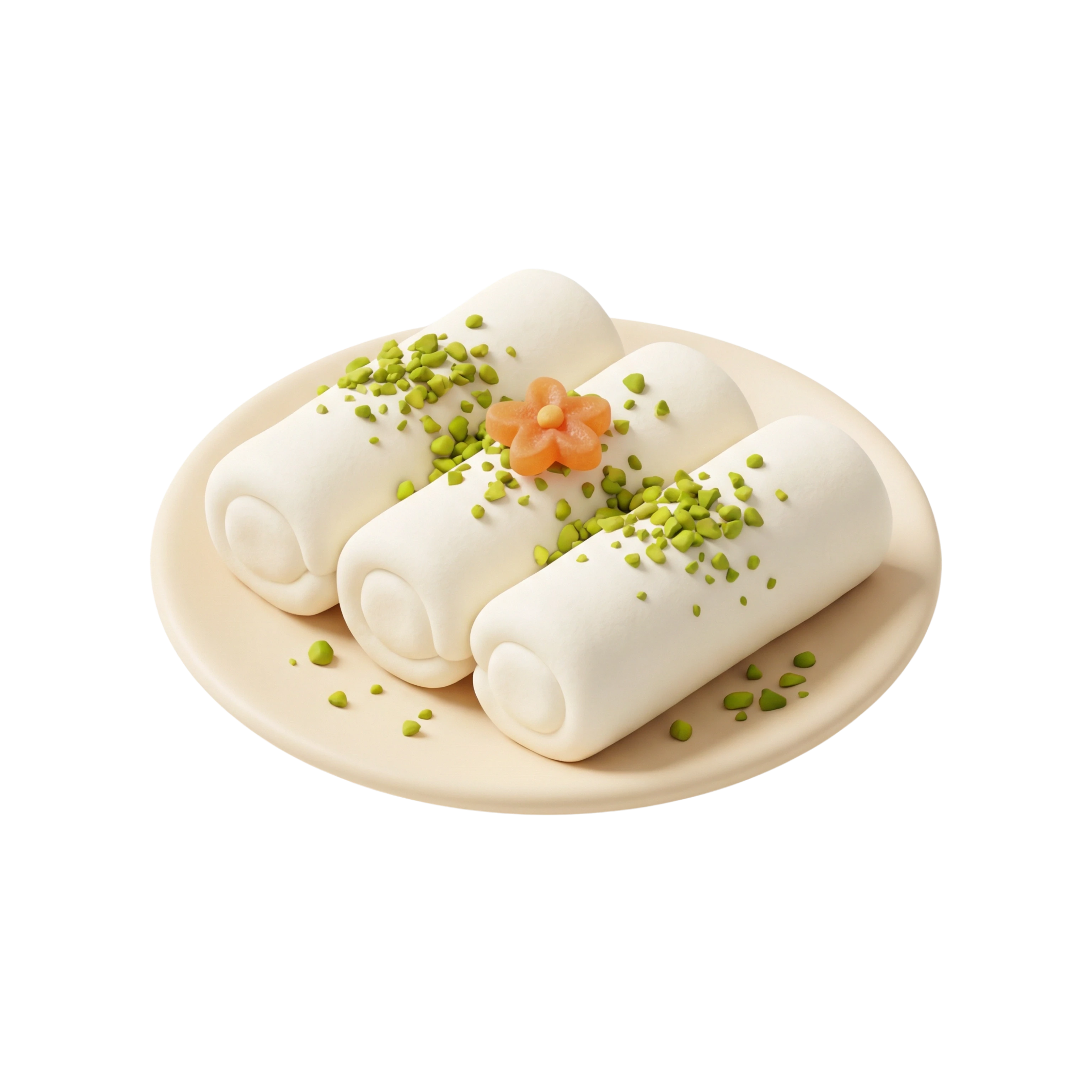 حلى سوري فاخر مصنوع من عجينة السميد والجبن الحلو، محشو بالقشطة الطازجة ومزين بالفستق المجروش. يتميز بقوامه الناعم وطعمه المتوازن بين القشدية والمطاطية مع لمسة مكسرات غنية.
