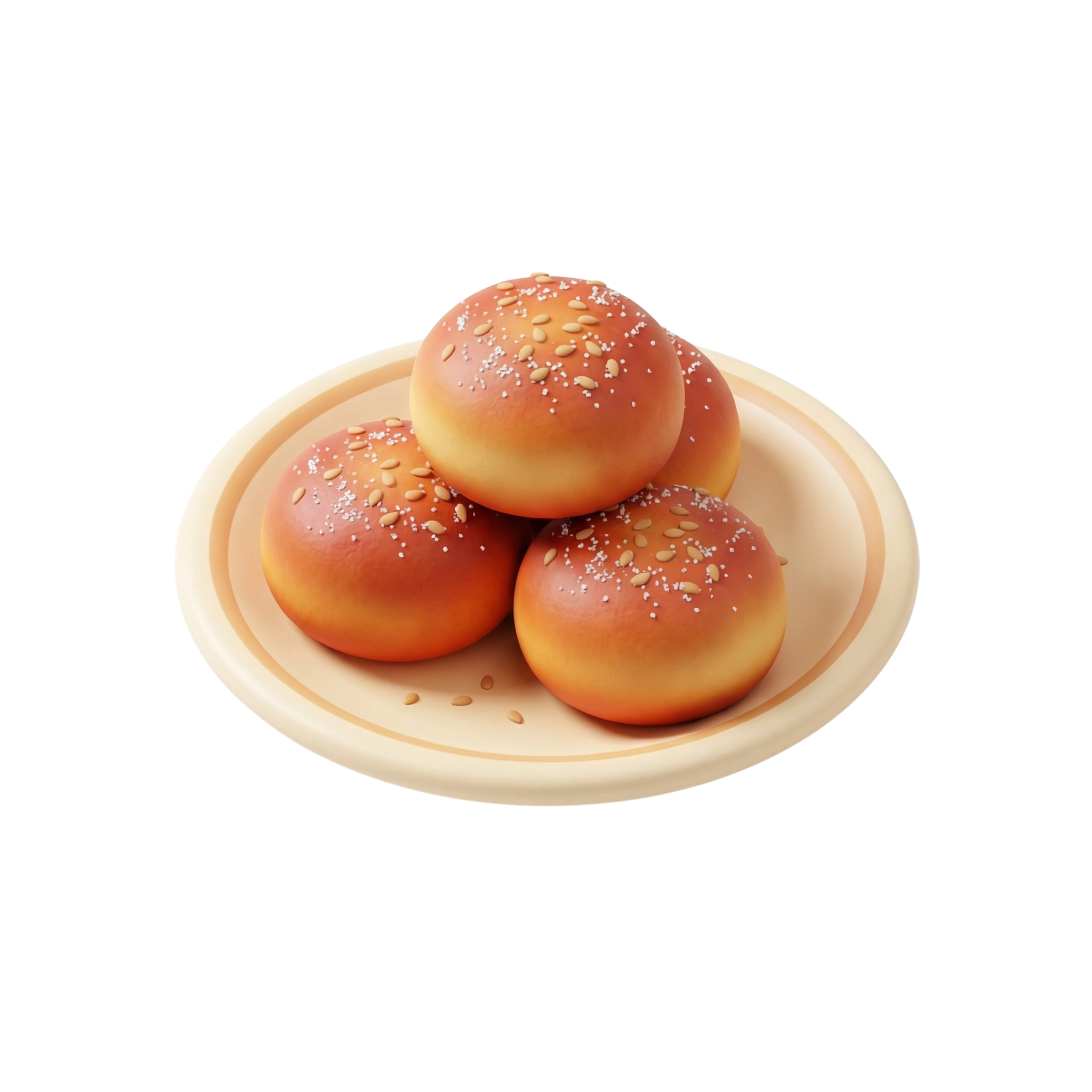 Khanfroush is a slightly sweet, fluffy Yemeni pastry with a golden crust, traditionally baked then topped with sesame seeds. Its pillowy texture and subtle cardamom aroma make it a favorite treat with tea or coffee.