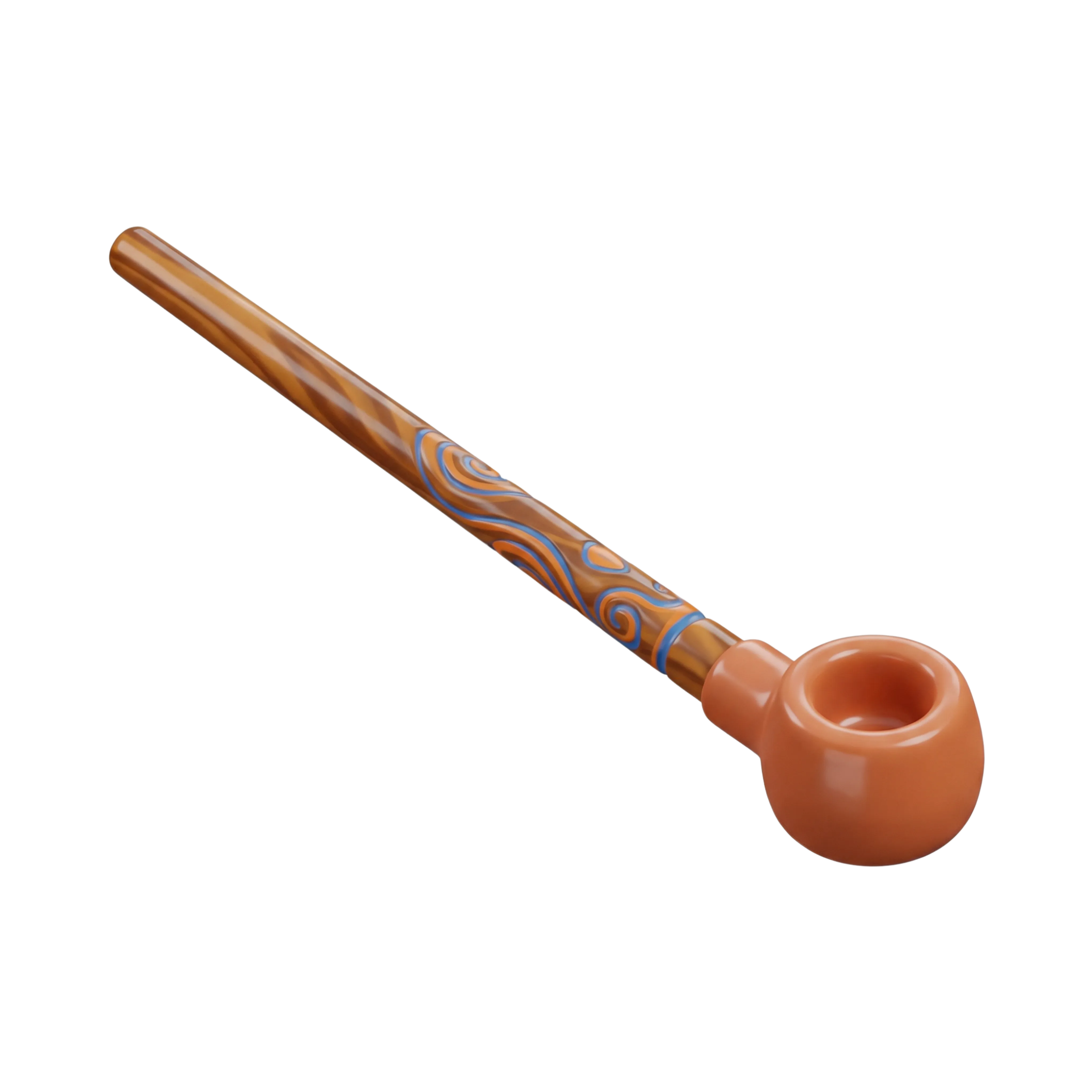 A high-quality 3D render of a traditional Sebsi pipe, commonly used in Tunisian and Maghreb cultures. The object features a glossy ceramic finish with hand-painted style patterns in warm tones, ideal for cultural presentations, educational media, or historical asset libraries.