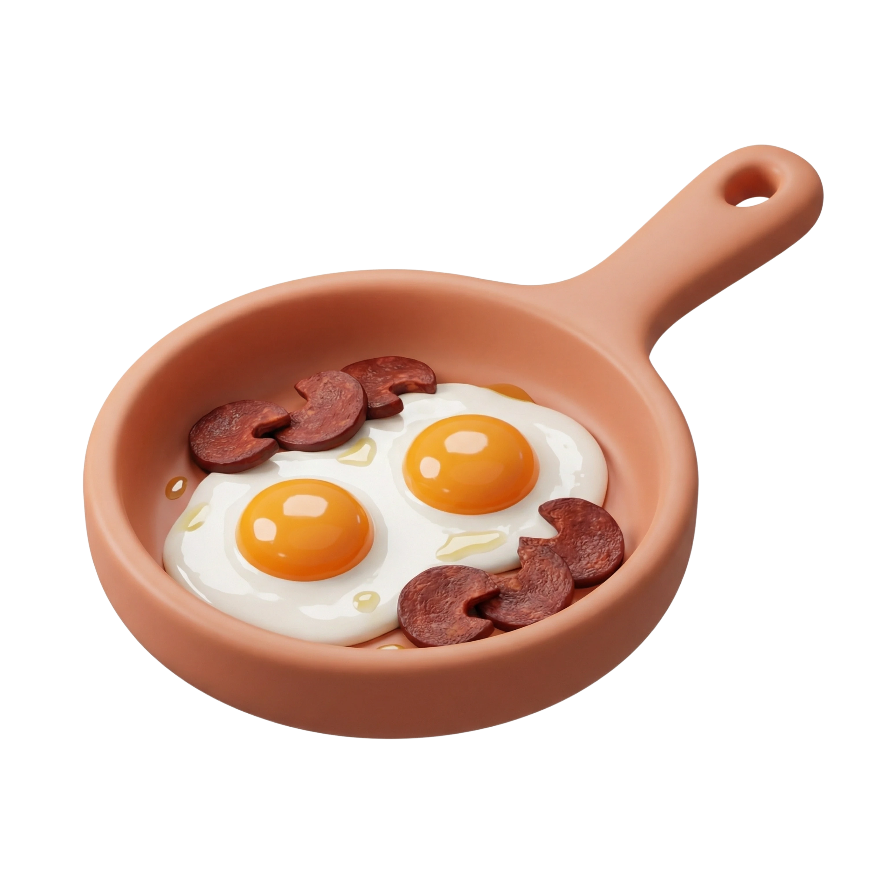 Rich and flavorful sunny-side-up eggs served with spicy, aromatic slices of Turkish sujuk sausage. The eggs are cooked to perfection with runny yolks and the sujuk adds a smoky, peppery depth, creating a hearty breakfast dish packed with umami.