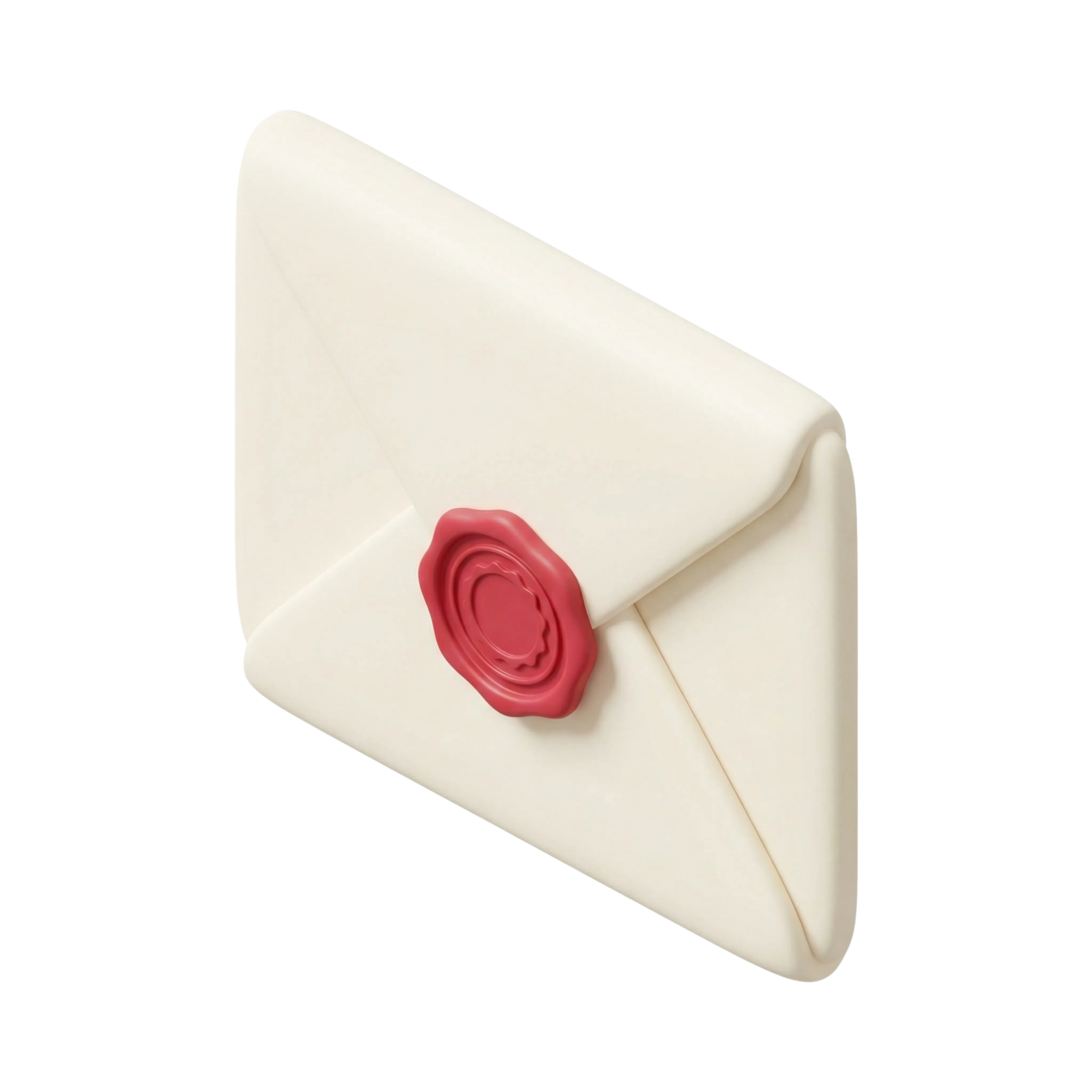 A high-resolution 3D model of an elegant sealed letter featuring a matte cream envelope and a classical red wax seal. Ideal for use in interface design, messaging apps, storytelling visuals, or digital collectibles.