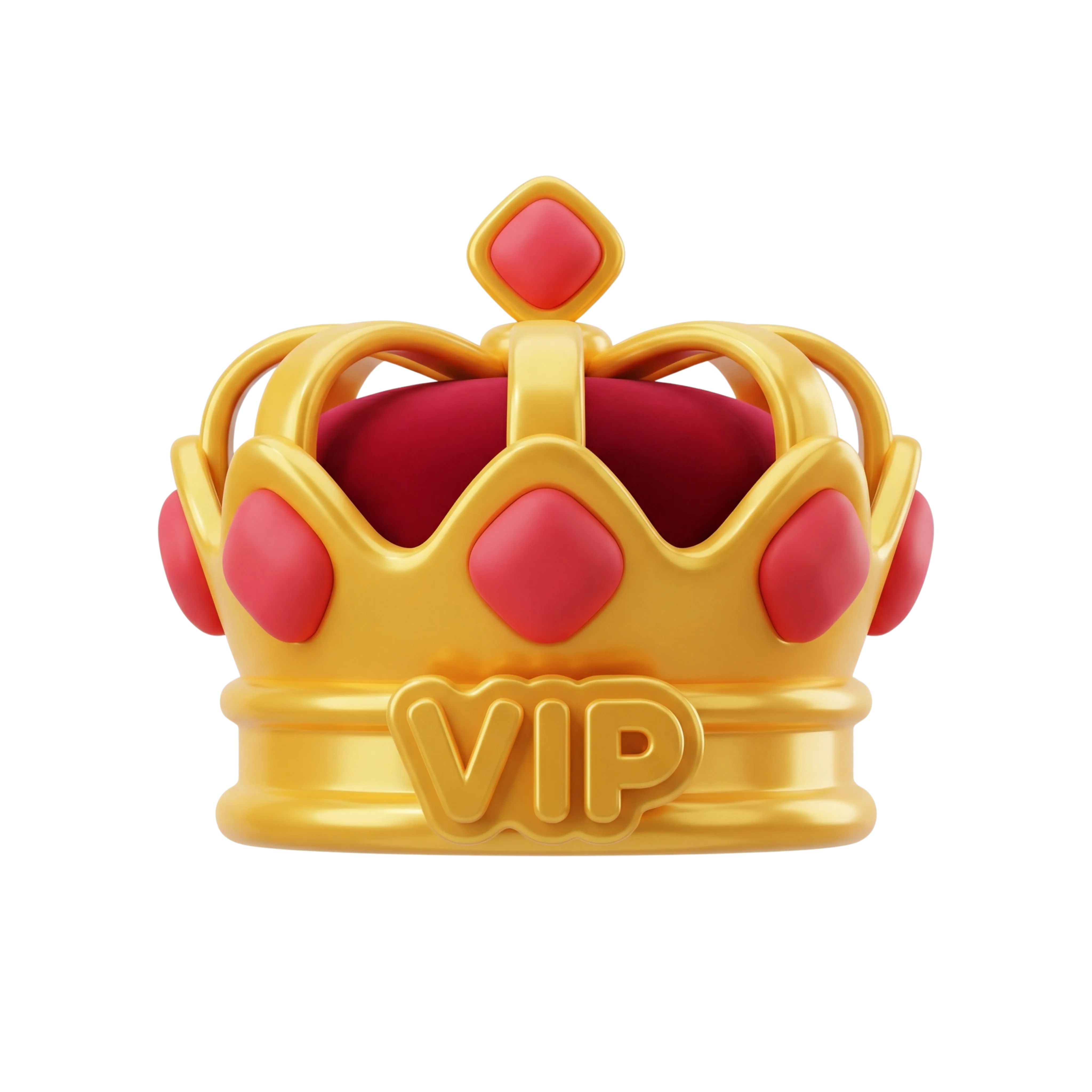 مجسم ثلاثي الأبعاد عالي الدقة لتاج VIP يتميز بسطح ذهبي لامع ووسادة داخلية حمراء مع زخارف تشبه الأحجار الكريمة الحمراء. يحتوي التاج على عبارة 'VIP' بارزة في الأمام، مما يجعله مثالياً لتصميم واجهات المستخدم أو عناصر التفاعل في الألعاب أو أنظمة المكافآت الرقمية.